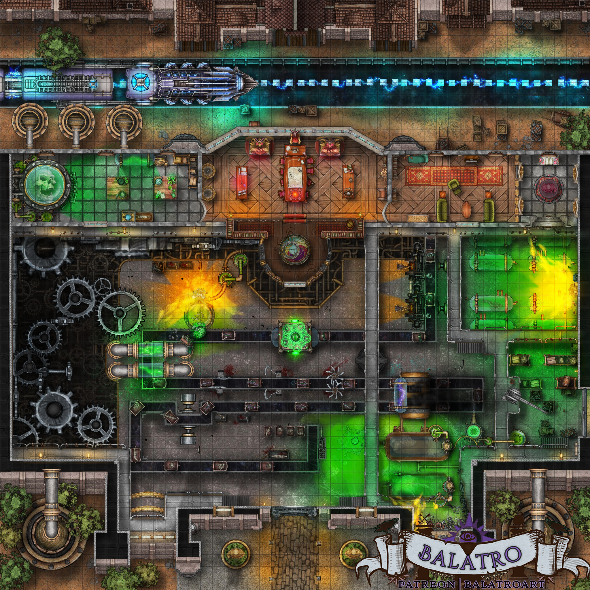 Monster Factory is a 7 phased battle map, It is chaotic and very goofy much like the namesake. Cheers to the good good boys. The green Ooze is inspired by "The Dip" from Who framed Rodger Rabbit, My hope is the encounter will become something of a The floor is lava sort of experience as the party fends off the factory's creations and tries and stop them from erupting out of glass chambers and reanimating from the conveyor belt.